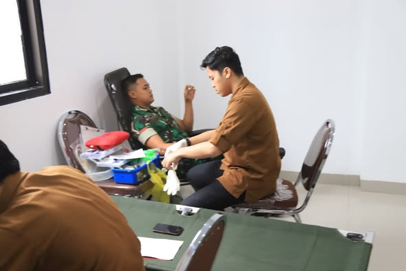 SAMARINDA – Prajurit Komando Resort Militer (KOREM) 091/Aji Surya Natakesuma (ASN) menggelar aksi donor darah dalam rangka Peringatan Hari Lahir Kejaksaan RI ke-80 Tahun 2025, bertempat Klinik Pratama Adhyaksa, Kantor Kejaksaan Kaltim Samarinda Seberang Kaltim, Senin (25/8/2025).