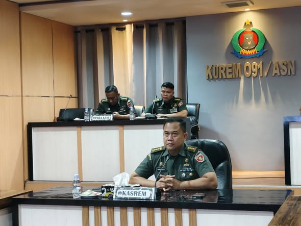 SAMARINDA – Kasrem 091/ASN, Kolonel Kav Rahyanto Edy Yunianto S.A.P. menghadiri Kegiatan Konfirmasi Temuan Audit Kinerja Itjenad wilayah Kaltim dan Kaltara secara virtual, bertempat di ruang Command Center Korem 091/ASN Jl. Gajah Mada Kel. Bugis Kec. Samarinda Kota, Samarinda, Rabu (29/10/2025).
