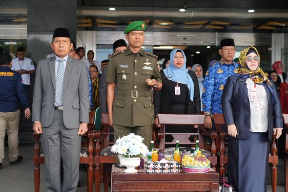 Komandan Detasemen Kesehatan Tentara (Dandenkesyah) 06.04.01 Samarinda Letkol Ckm Sudarmanto S.Fi, Physio. Mewakili Danrem 091/ASN hadiri upacara Peringatan Hari Kesehatan Nasional (HKN) ke-61 tahun 2025, yang diselenggarakan Dinas Kesehatan Provinsi Kaltim, di Halaman Kantor Gubernur Kaltim, Rabu 12 November 2025.