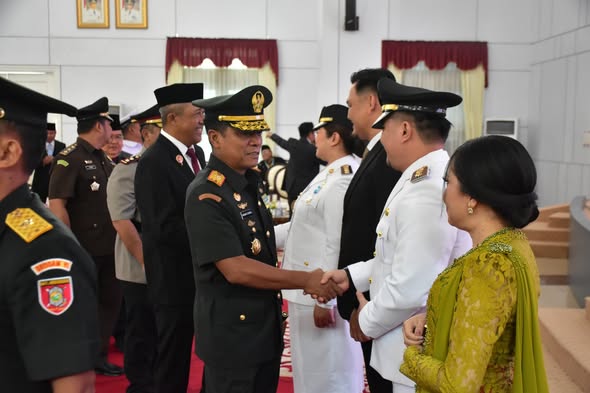 SAMARINDA – Danrem 091/ASN Brigjen TNI Anggara Sitompul, S.I.P., M.Si hadiri pelantikan Angela Idang Belawan dan Suhuk sebagai Bupati dan Wakil Bupati Mahakam Ulu periode 2025–2030, bertempat di Gedung Odah Etam Jl. Gajah Mada Samarinda, Selasa (23/9/2025).