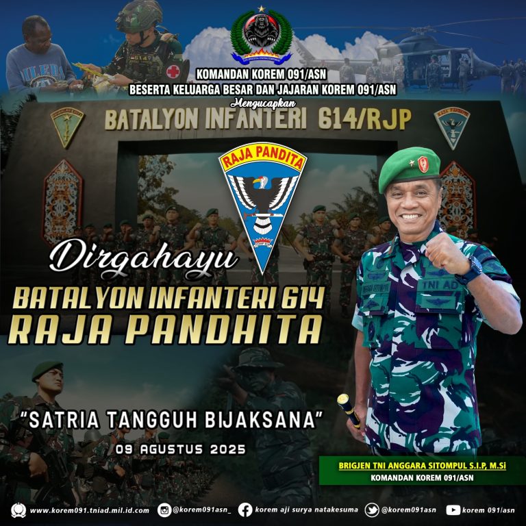 Komandan Korem 091/ASN dan Beserta Keluarga Besar Korem 091/ASN Mengucapkan Dirgahayu