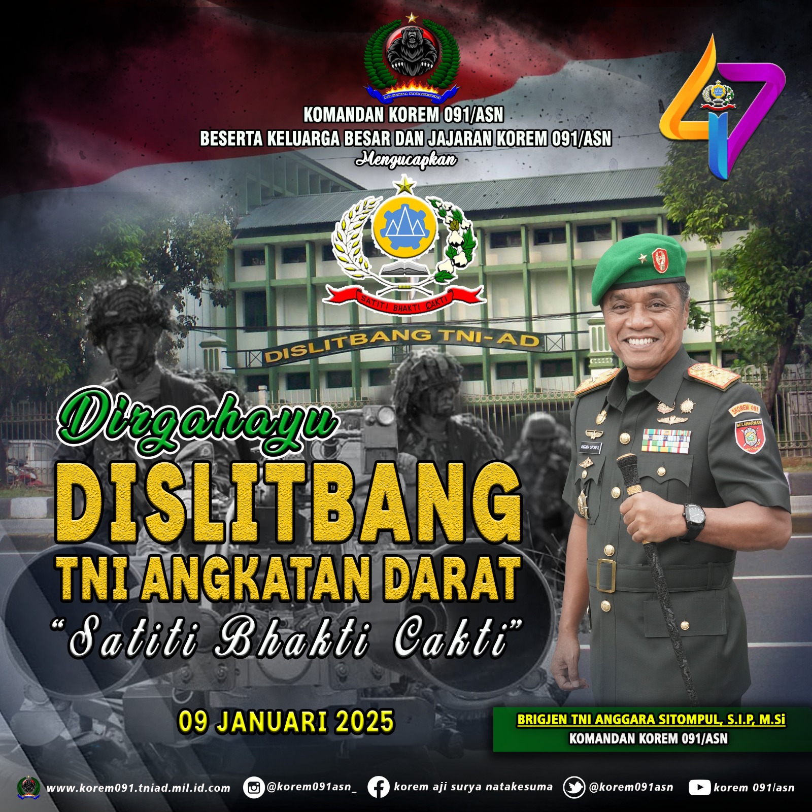 Dirgahayu Dislitbangadredaksi09/01/202508/05/2025PENGUMUMAN62 Dilihat Post Views: 62 Jangan LewatkanDirgahayu Batalyon Infanteri 614 RAJA PANDHITASelamat Hari BhayangkaraUcapan Selamat Tahun Baru Islam 1447 H/2025Dirgahayu Polisi Militer TNI Angkatan DaratDirgahayu Kodam I Bukit BarisanDirgahayu Yonif 621 ManuntungDirgahayu Kodam XIII Merdeka Jaya SaktiUcapan Idul Adha Tahun 2025Dirgahayu Yonif Raider 613 Raja AlamDIRGAHAYU YONIF 611 AWANG LONGDIRGAHAYU KODAM XIV HASANNUDINDIRGAHAYU JASMANI TNI ANGKATAN DARATHARI LAHIR PANCASILA27 MEI 2025 HUT KODAM IX UDYSelamat Hari WaisakSelamat Idul AdhaDirgahayu Brigif 24/Bulungan CaktiDirgahayu BIN RISelamat HardiknasSelamat Hari BuruhDanrem 091/ASN Beserta Keluarga Besar dan Jajaran Korem 091/ASN Mengucapkan Selamat Memperingati Hari KartiniDanrem 091/ASN Beserta Keluarga Besar dan Jajaran Korem 091/ASN Mengucapkan Dirgahayu PussansiadDanrem 091/ASN Beserta Keluarga Besar dan Jajaran Korem 091/ASN Mengucapkan Dirgahayu DisadaadDanrem 091/ASN Beserta Keluarga Besar dan Jajaran Korem 091/ASN Mengucapkan Dirgahayu KOPASSUSDirgahayu KopaskaDirgahayu BekangadDirgahayu Yonif 623/Bhakti Wira UtamaDirgahayu Infolahtad