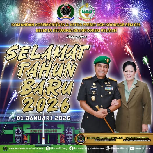 Komandan Korem 091/ASN dan Ketua Persit Kartika Chandra Kirana (KCK) Koorcab Rem 091/ASN Beserta Keluarga Besar Korem 091/ASN mengucapkan