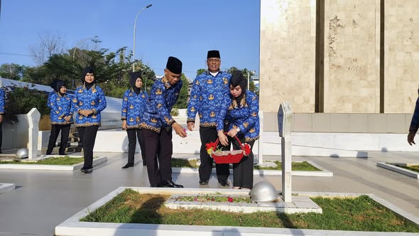 Selanjutnya, peserta mengikuti prosesi tabur bunga di sejumlah pusara pahlawan.