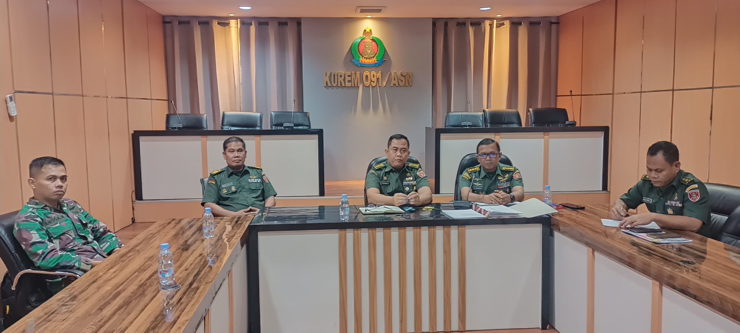 Kasrem 091/ASN, Kolonel Kav Rahyanto Edy Yunianto, S.A.P, memimpin rapat untuk membahas perencanaan pembangunan KDKMP di jajaran Korem 091/ASN. Rapat ini bertujuan meningkatkan koordinasi dan sinkronisasi program pembangunan.