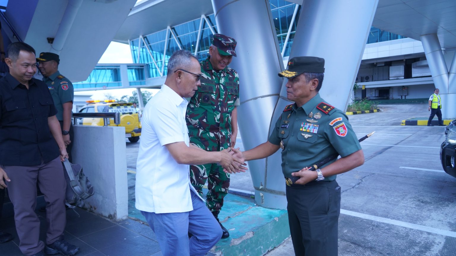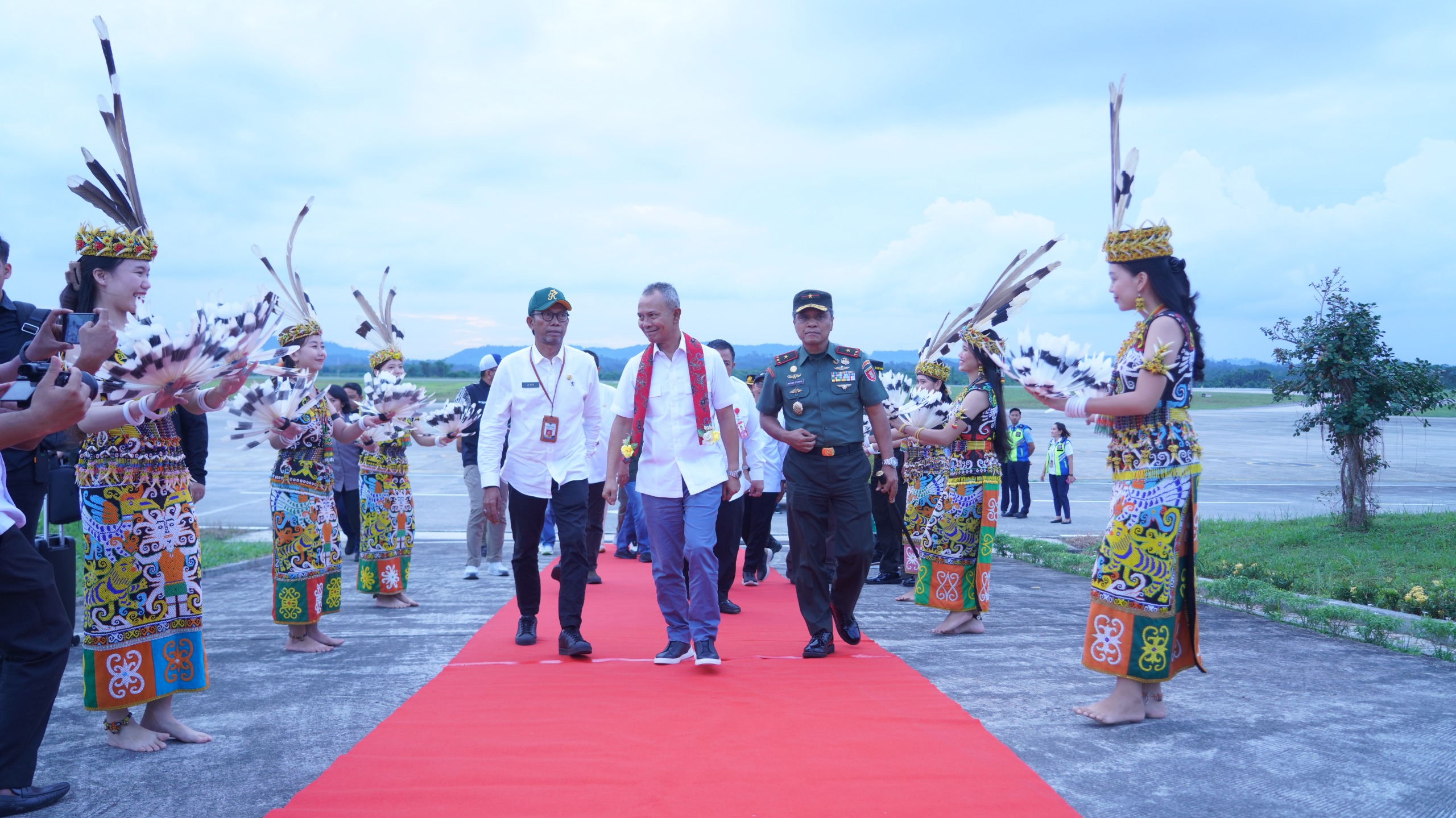 Kedatangan Letjen TNI Richard Tampubolon disambut langsung oleh Pangdam VI/Mlw, Mayjen TNI Rudy Rachmat Nugraha.Sip.M.Sc., Wakapolda Kaltim, Brigjen Pol Dr. H .Muhammad Sabilul Alif, SH.,S.I.K., M.Si., Irdam VI/Mlw, Brigjen TNI Eventinus Teddy, Kabinda Kaltim Brigjen TNI Priyanto Eko Widodo S.Ip