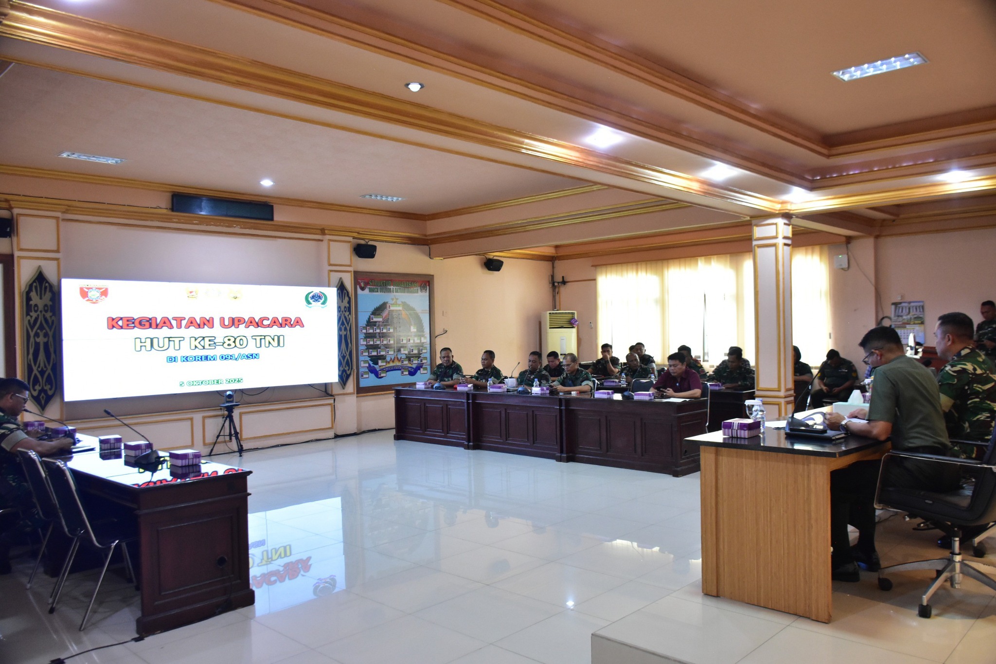 “Rapat ini bertujuan untuk menyamakan persepsi agar kegiatan upacara dalam rangka memeriahkan HUT TNI ke-80 dapat berjalan dengan lancar sesuai yang direncanakan,”ucap Kasrem.