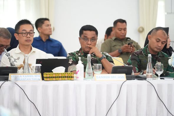 SAMARINDA – Pangdam VI/Mlw Mayjen TNI Rudy Rachmat Nugraha, S.I.P., M.Sc didampingi Danrem 091/Asn Brigjen TNI Anggara Sitompul, S.I.P., M.Si hadir Rapat Koordinasi Daerah Pertanahan dan Tata Ruang Se – Kalimantan Timur, sebagai pimpinan rapat Menteri Agraria dan Tata Ruang Republik Indonesia Nusron Wahid.