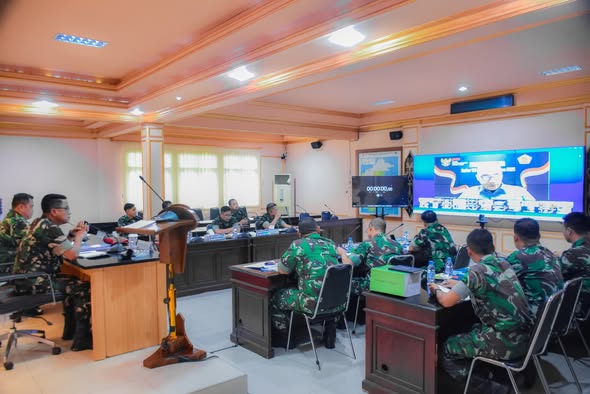 SAMARINDA – Danrem 091/ASN Brigjen TNI Anggara Sitompul, S.I.P., M.Si. di dampingi Kasrem 091/ASN Kolonel. Kav. Rahyanto Edy Yuniarto S.A.P. hadir kegiatan Wawancara Pembangunan ZI Satker TNI AD menuju WBK Tahun 2025 Secara Vicon.