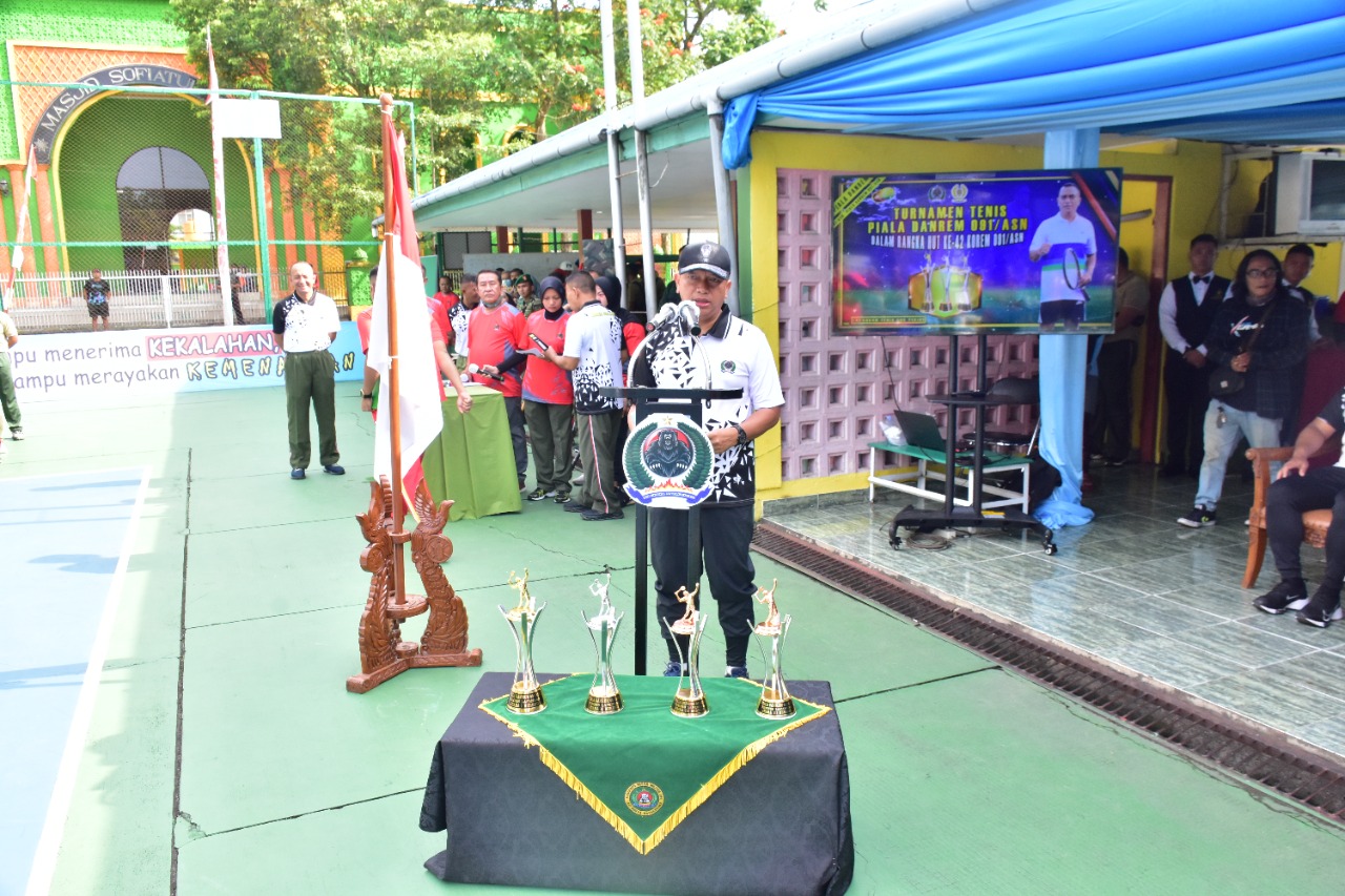 SAMARINDA.korem091.tniad.mil.id – Danrem 091/ASN Brigjend TNI Dendi Suryadi S.H, M.H. membuka Turnamen Tenis Piala Danrem 091/ASN dalam rangka HUT Korem 091/Aji Surya Natakesuma (ASN) ke- 42 di Lapangan Tennis GOR Segiri, Jl. Kesuma Bangsa, Kel. Bugis, Kota Samarinda, Samarinda kota Kaltim, Jumat (4/11/2022).