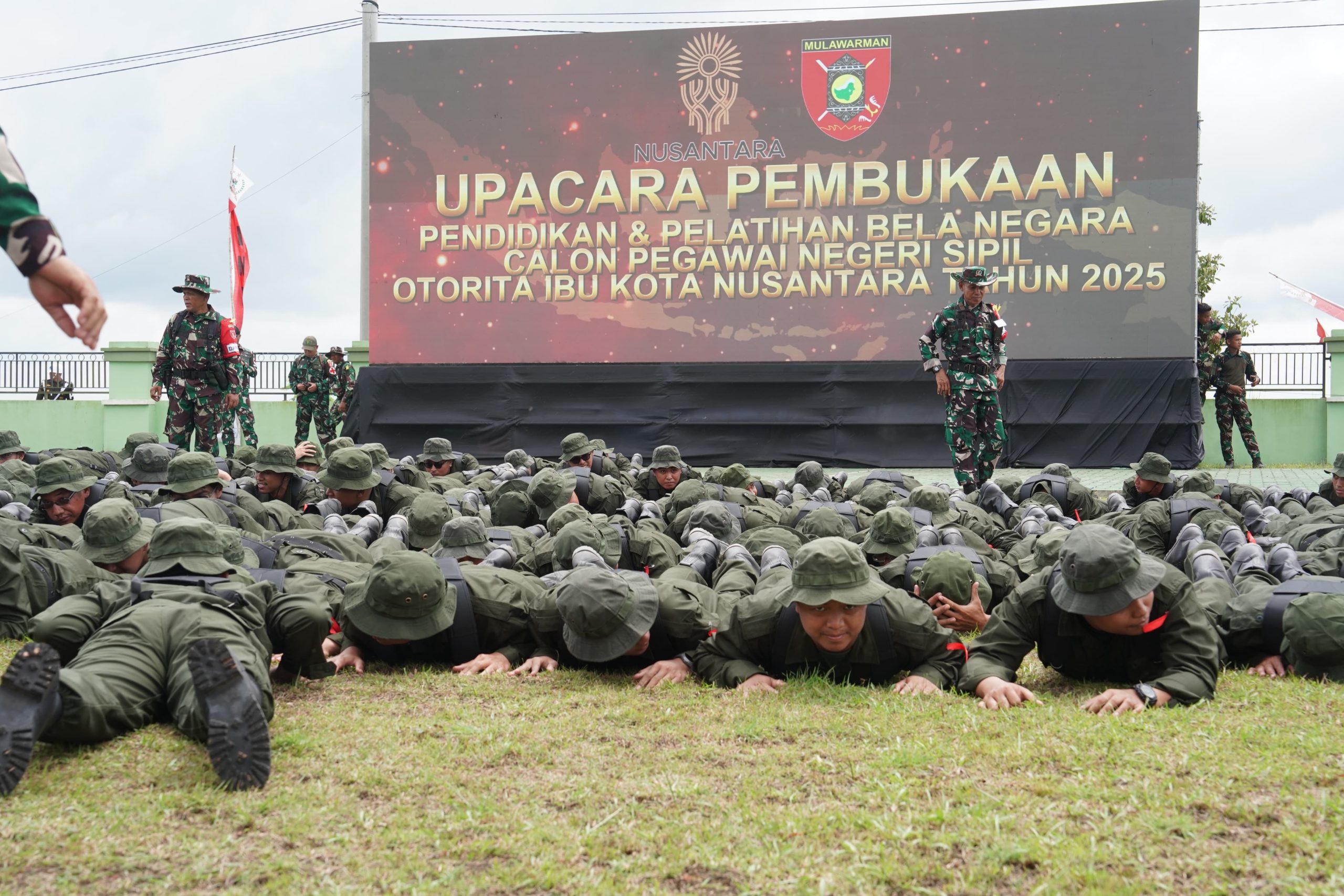 Pendidikan dan Latihan Bela Negara bagi 576 Calon Pegawai Negeri Sipil (CPNS) Otorita Ibu Kota Nusantara (IKN), dibuka secara resmi oleh Pangdam VI/Mulawarman Mayjen TNI Rudy Rahmat Nugraha, S.I.P., M.Sc. selaku Inspektur Upacara.
