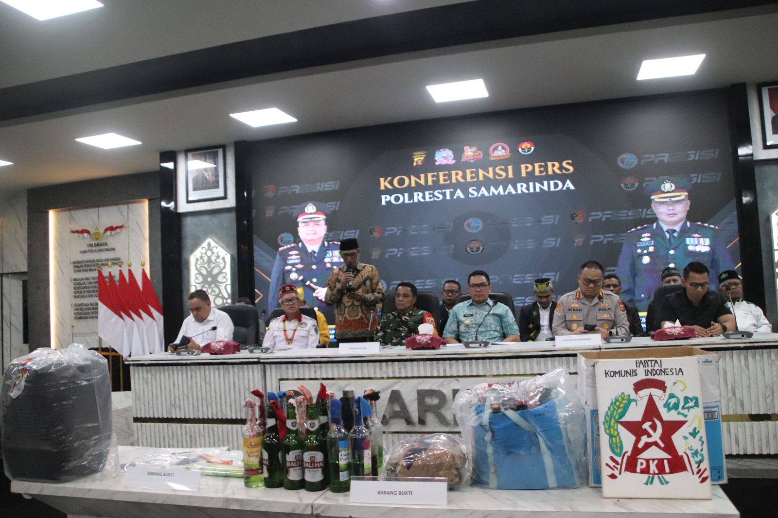 SAMARINDA – Danrem 091/ASN, Brigjen TNI Anggara Sitompul, S.I.P.,M.Si. hadiri Konferensi Pers Pengungkapan Bom Molotov terkait dengan rencana aksi unjuk rasa oleh Aliansi Mahakam pada hari Senin tanggal 01 September 2025 di wilayah Hukum Polresta Samarinda. Kegiatan di laksanakan di lantai 2 ruang Rupa Tama Polresta Samarinda Jl. Slamet Riyadi No.01 Kel. Karang Asam Ulu Kec. Sungai Kunjang Kota Samarinda Kaltim.
