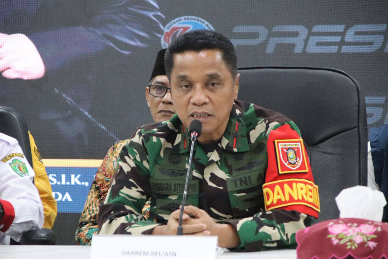 Danrem 091/ASN Brigjen TNI Anggara Sitompul, S.I.P.,M.Si. mengatakan, Pagi ini kita sengaja bertemu disini secara bersama – sama dalam rangka menyikapi kejadian di beberapa wilayah dan tentu ini perlu kita sikapi bagaimana situasi Kaltim saat ini.