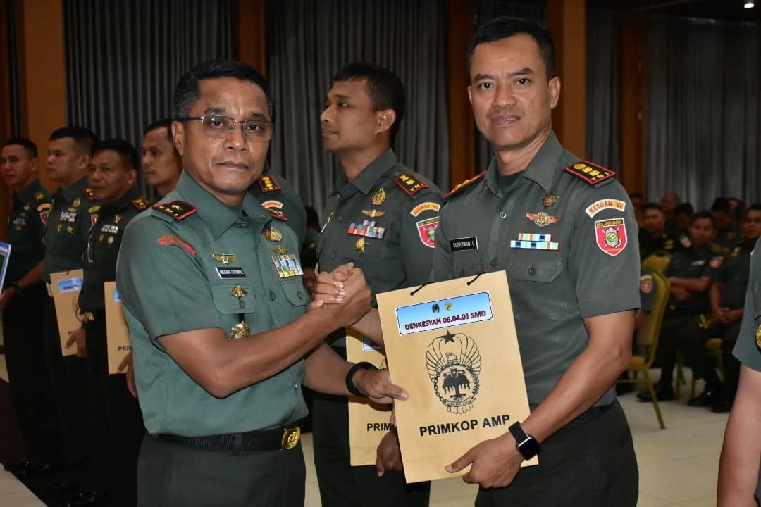 SAMARINDA – Danrem 091/ASN Brigjen TNI Anggara Sitompul, S.I.P., M.Si memberikan Jam Komandan Korem 091/ASN usai upacara bendera 17 an kepada seluruh Prajurit dan PNS Korem 091/ASN dan Balak Aju yang ada di wilayah Samarinda, kegiatan berlangsung di Aula Wira Yudha Korem 091/ASN Jl. Gajah Mada No 11 Samarinda, Senin (17/3/2025).