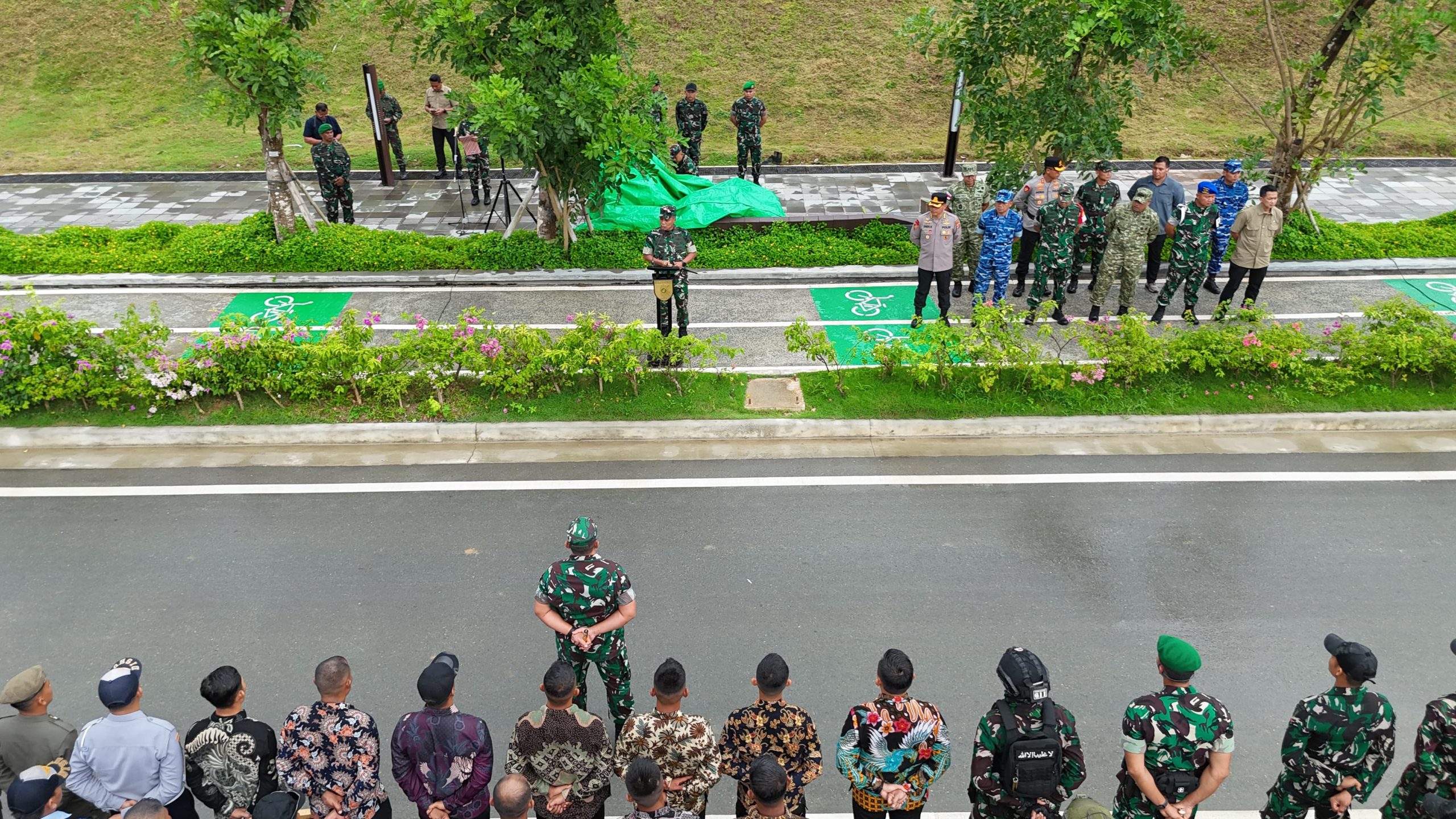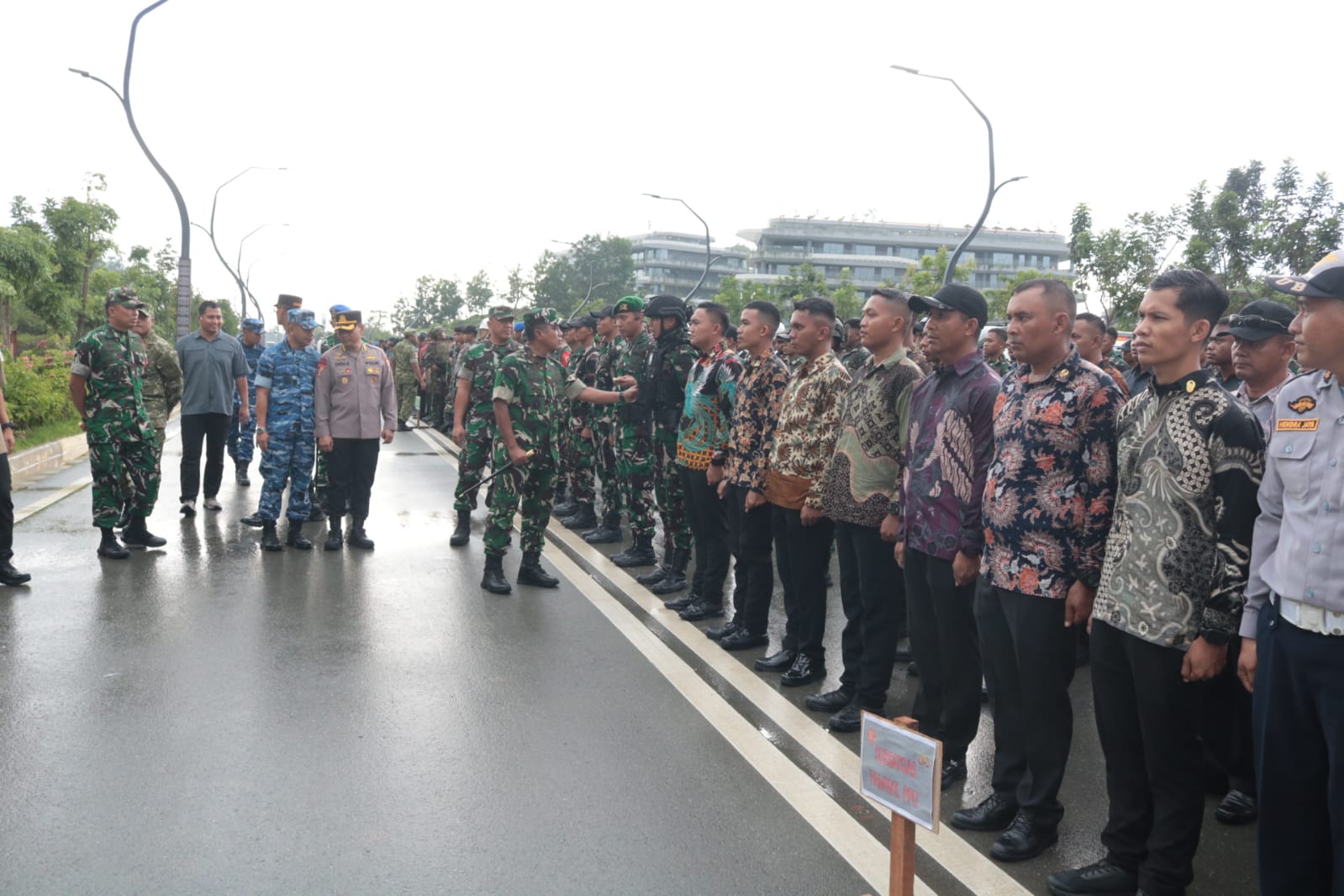 Jajaran TNI-Polri melaksanakan gelar Apel Pasukan dalam rangka persiapan Pengamanan Very Very Important Person (VVIP) yang dilaksanakan di Jl. Sumbu Timur, Kel. Bumi Harapan, Kec. Sepaku, Kab. Penajam Paser Utara Minggu (30/11/2025).