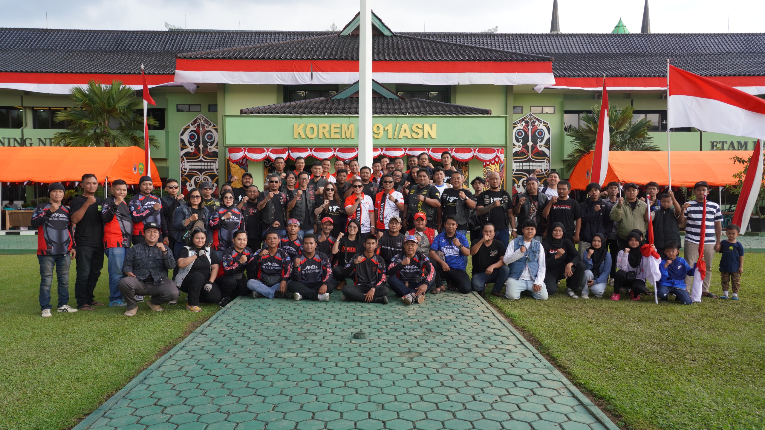 SAMARINDA – Danrem 091/Asn, Brigjen TNI Anggara Sitompul, S.IP., M.SI Silaturahmi dengan berbagai komunitas klub motor di wilayah Samarinda. dan melepas Pawai motor dalam rangka memeriahkan HUT RI ke – 80 Tahun 2025 , bertempat di Lapangan Makorem 091/ASN Jl. Gajah Mada Kel. Bugis Kec. Samarinda Kota. Jumat (15 /8/2025) Pkl 15.06 Wita