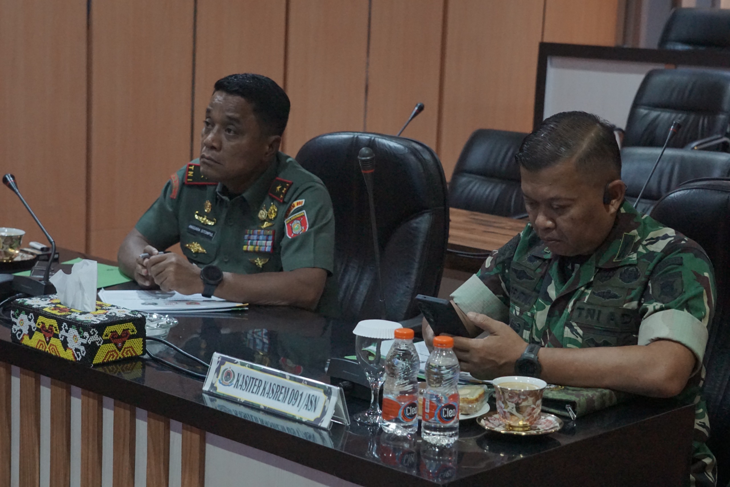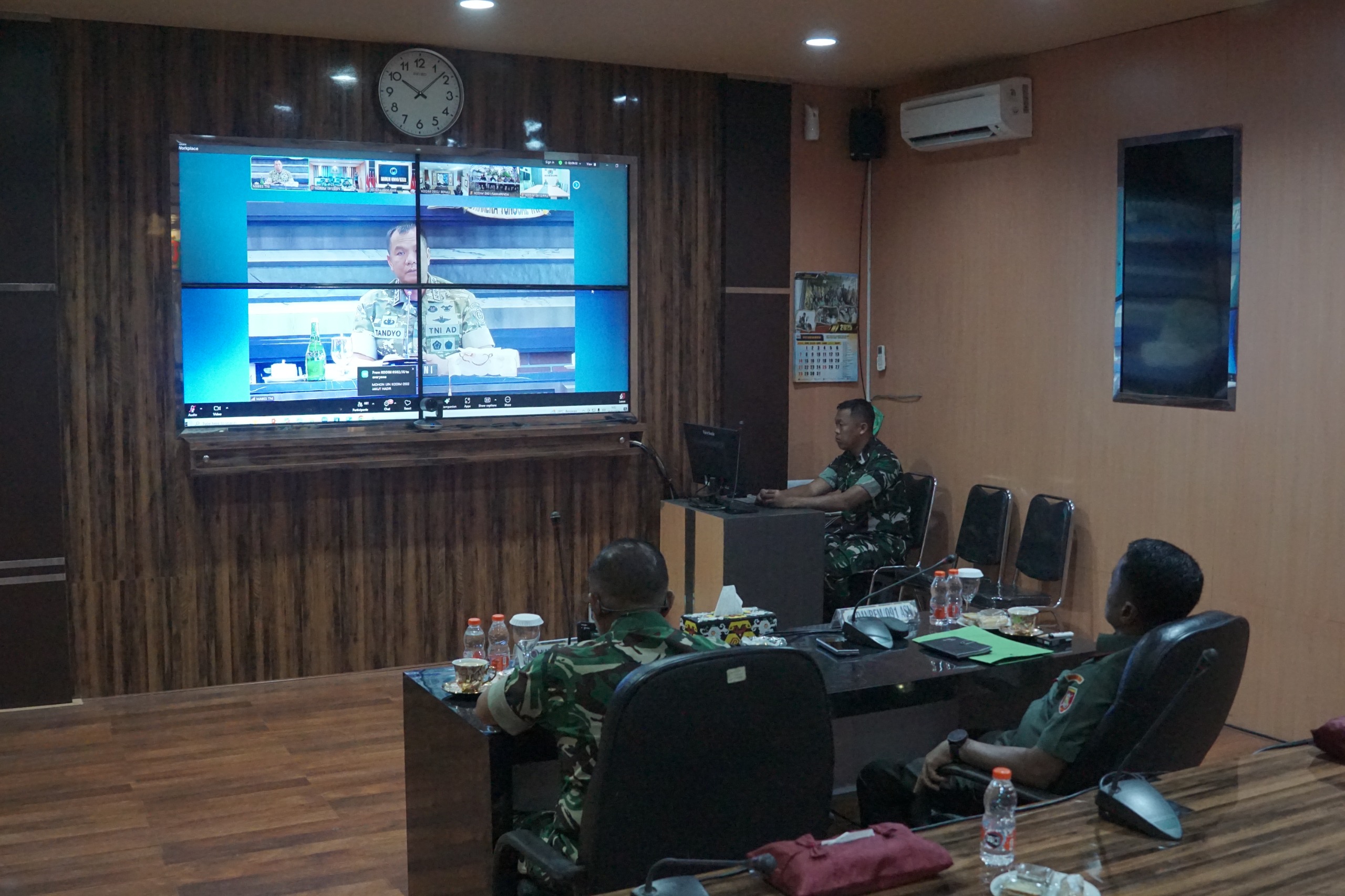 Kegiatan yang berlangsung di Ruang Command Center Korem 091/ASN ini diikuti oleh Danrem 091/ASN Brigjen TNI Anggara Sitompul, S.I.P., M.Si dan Kasi Ter Kasrem 091/ASN Kolonel Inf Aat Supriyatna Inf Aat Supriyatna. Vidcon terpusat dipimpin langsung oleh Wakil Panglima TNI Jenderal TNI Tandyo Budi Revita.