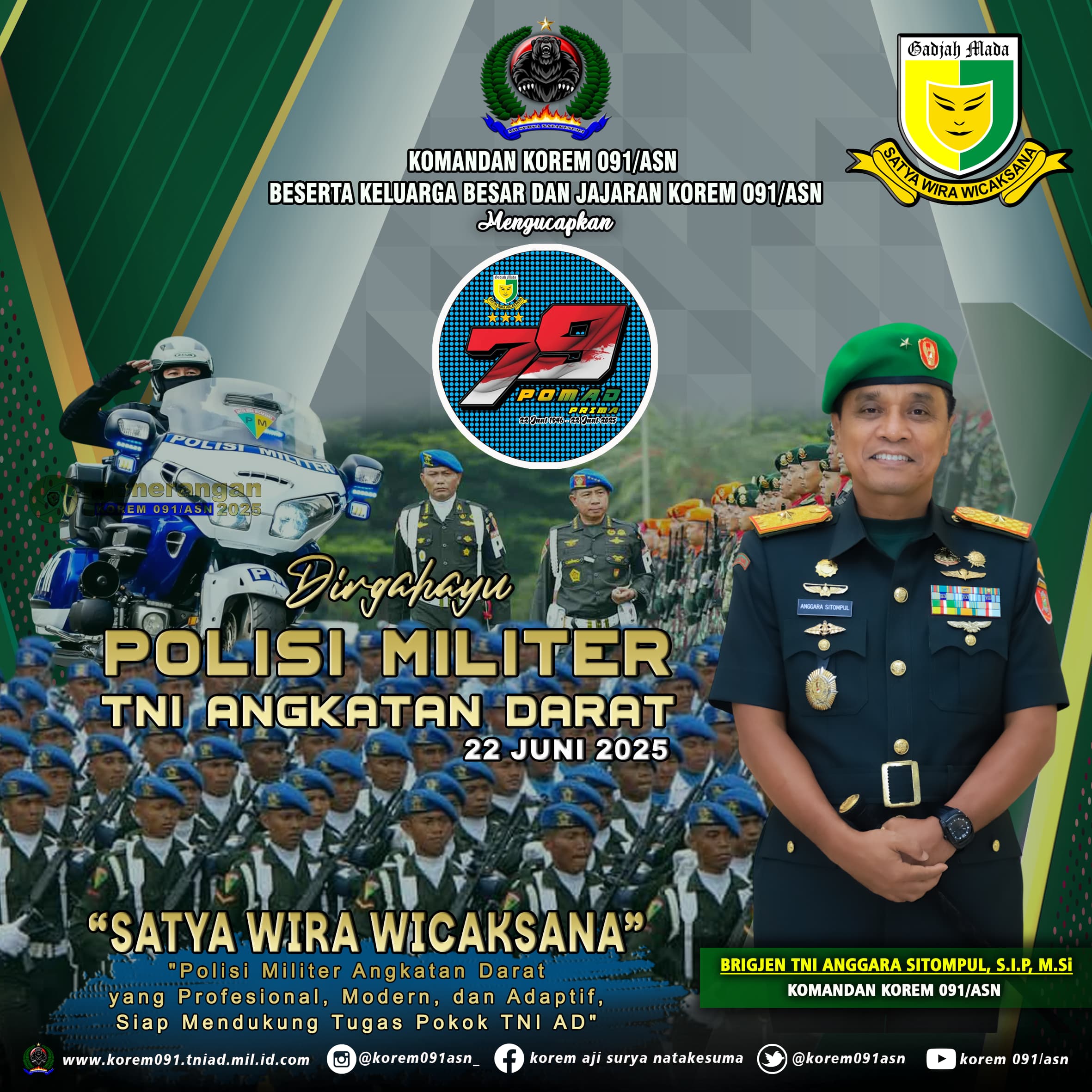 Dirgahayu Polisi Militer TNI Angkatan Daratredaksi21 Juni 2025Ucapan196 views Jangan LewatkanSelamat memperingati Isra Mi’raj 1447 H/2026 MDirgahayu PENERANGAN TNI ANGKATAN DARATDirgahayu PROVINSI KALIMANTAN TIMURDirgahayu PUSINTELADDirgahayu DISLITBANG TNI ANGKATAN DARATDirgahayu SECAPA AD