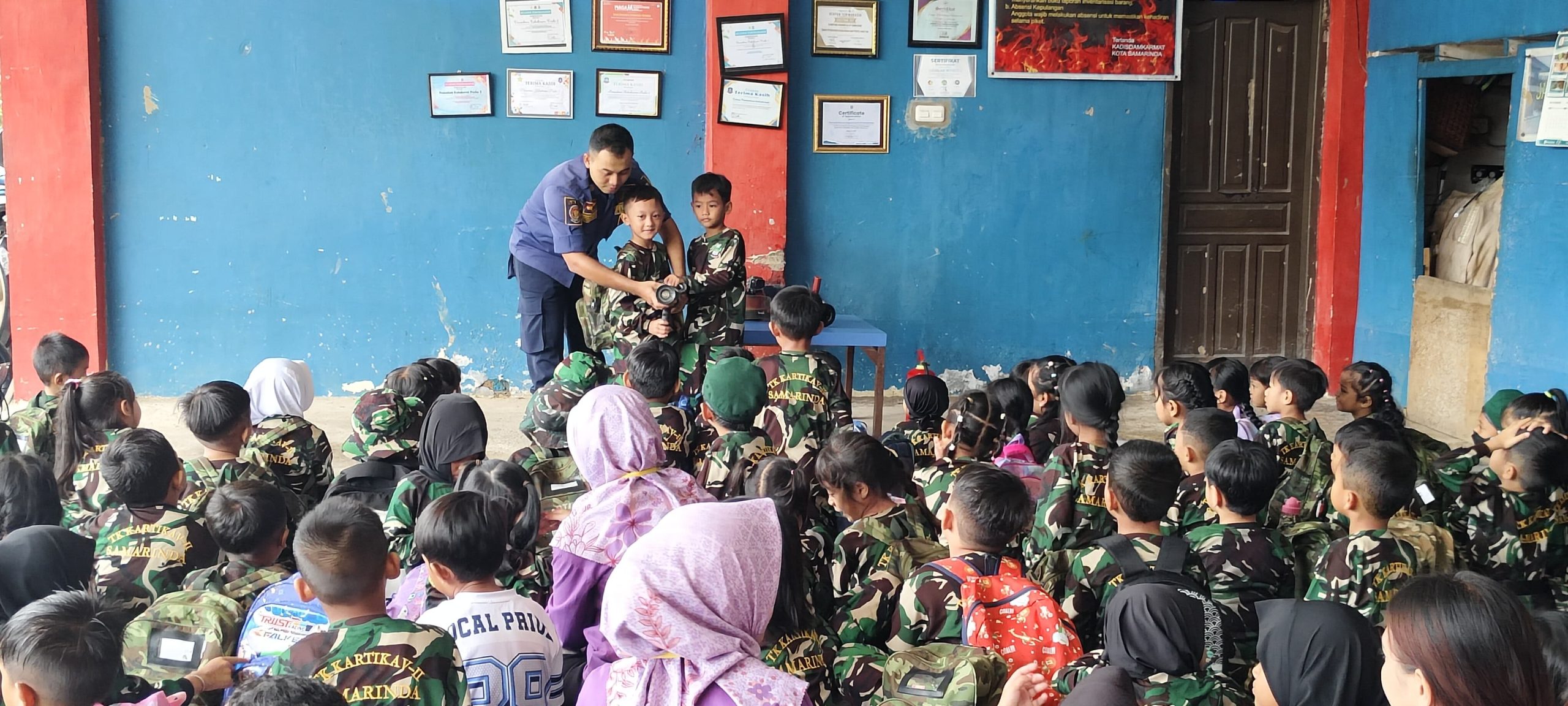 SAMARINDA – TK Kartika V-11 Air Putih Samarinda melaksanakan kunjungan wisata belajar Dinas Pemadam Kebakaran Posko II Sempaja Jl M. Yamin Samarinda dengan tema Profesi Damkar, Rabu (19/11/2025).