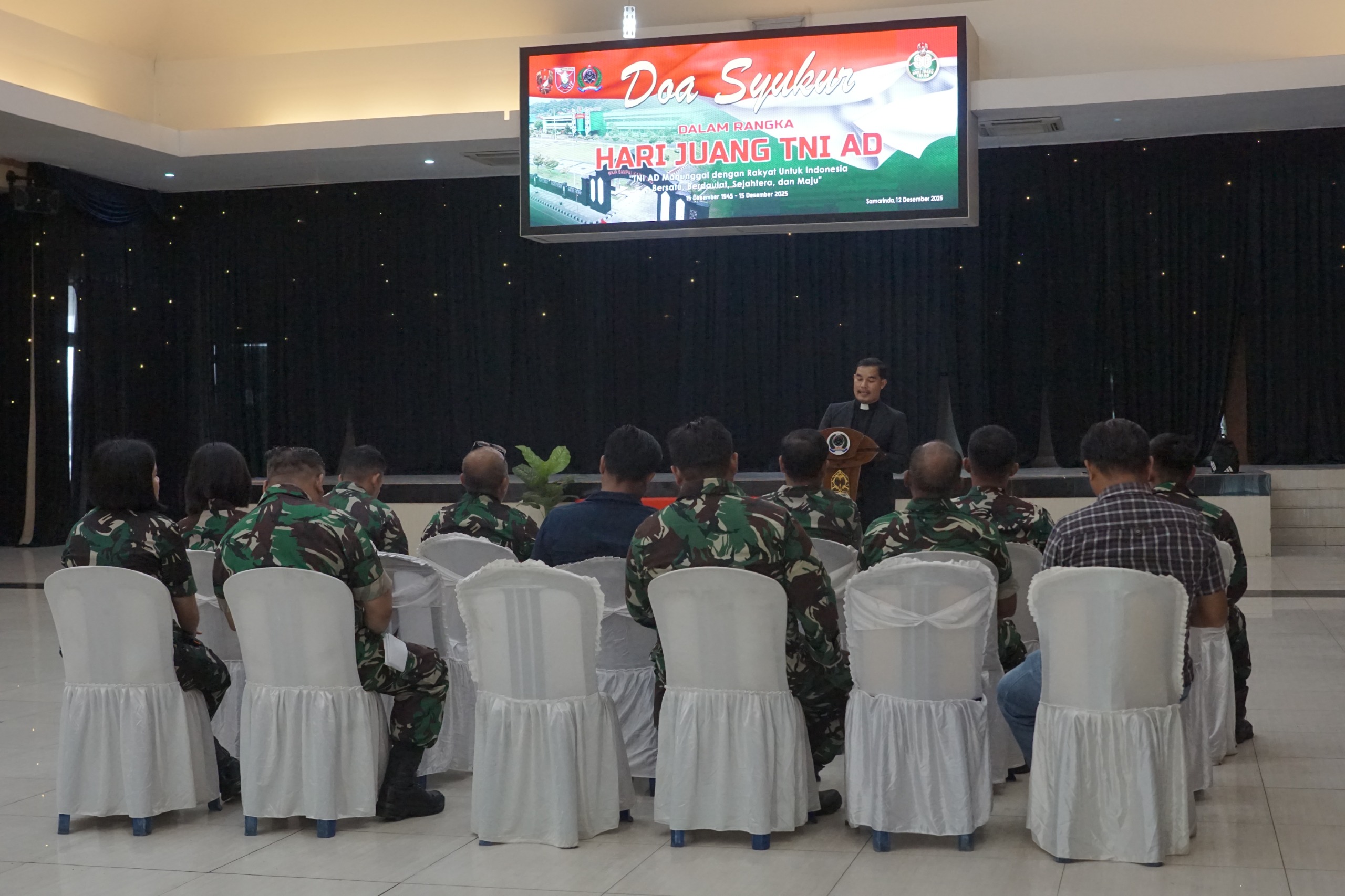 SAMARINDA – Prajurit dan Pegawai Negeri Sipil (PNS) Korem 091/Aji Surya Natakesuma (ASN) beserta masyarakat kota Samarinda melaksanakan Doa bersama usai sholat Jum’at dalam rangka memperingati Hari Juang Kartika (HJK) Tahun 2025 di Masjid Baitussalam Makorem 091/ASN Jalan Gajah Mada No. 11 Samarinda, Kaltim, Jum’at (12/12/2025).