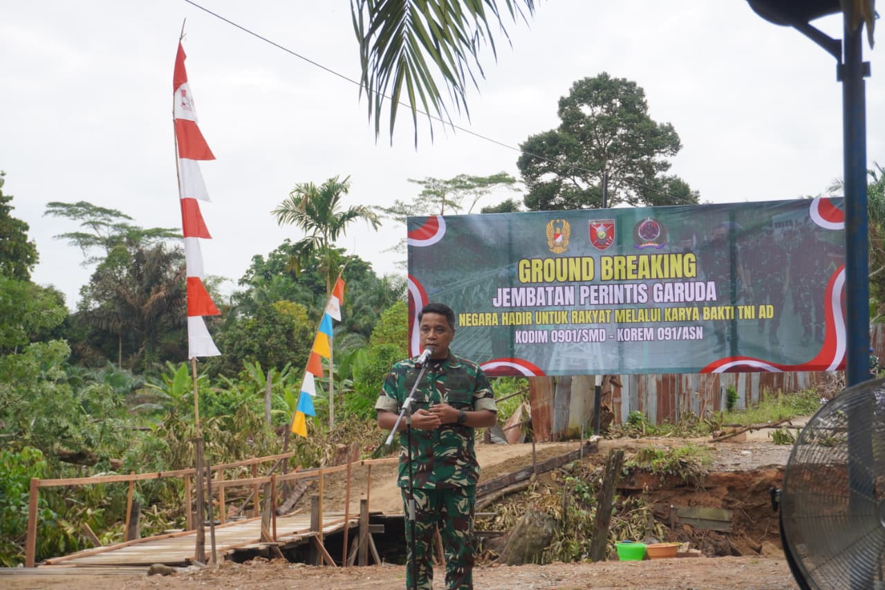 “Saya berpesan kepada seluruh Prajurit kami yang bertugas dalam membangun Jembatan ini, dan juga saya menghimbau kepada Perangkat Pemerintah Kecamatan, Kelurahan serta masyarakat agar senantiasa membantu kelancaran dan mensukseskan pembangunan Jembatan Garuda ini.