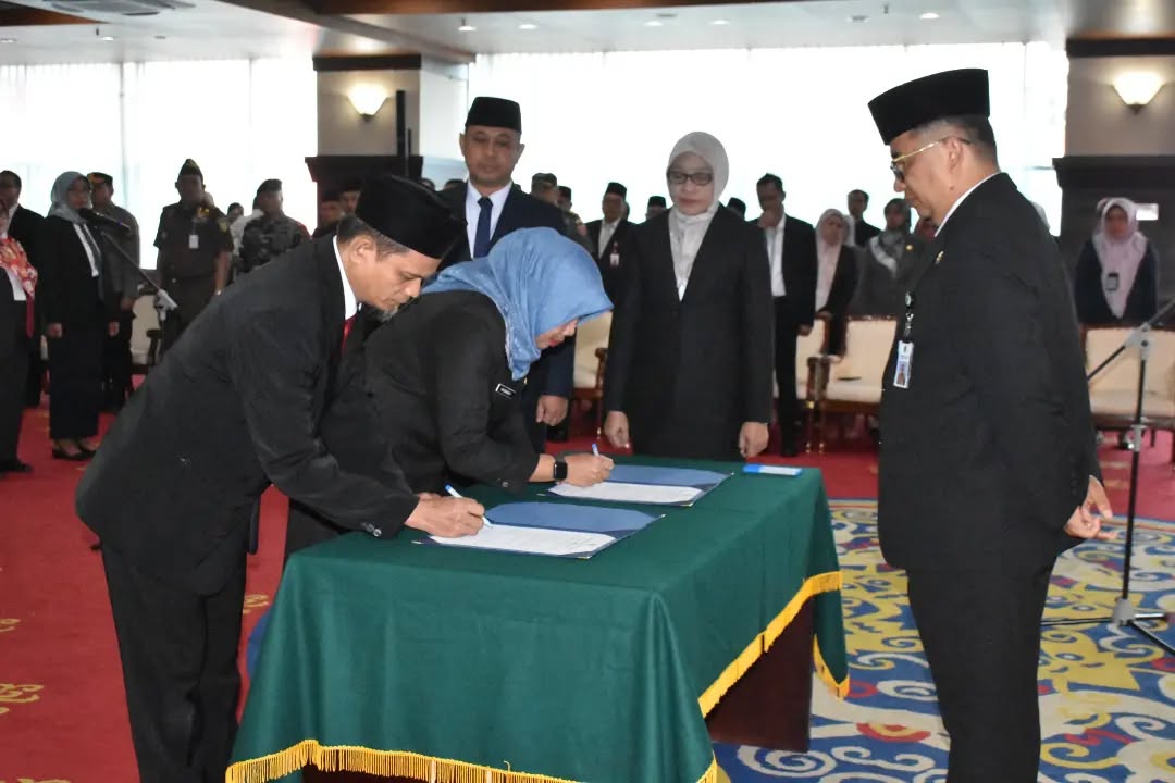 Pelantikan dan Pengambilan Sumpah Jabatan Pejabat Pimpinan Tinggi Pratama dilaksanakan di Ruang Ruhui Rahayu Kantor Gubernur Kaltim Rabu (31/7/2024).