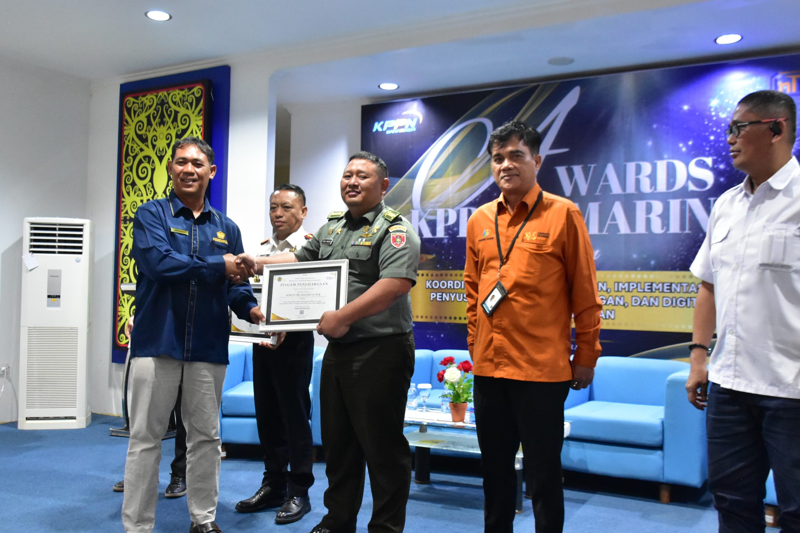 Diketahui Kasi Rem 091/ASN menerima Piagam penghargaan dari Kementerian Keuangan Direktorat Jenderal Perbendaharaan diberikan kepada KOREM 091/ASN Kodam VI/Mulawarman sebagai Satuan Kerja dengan Akurasi Penyampaian SPM -LS Tertinggi untuk kategori SPM -LS lebih dari 500 SPM