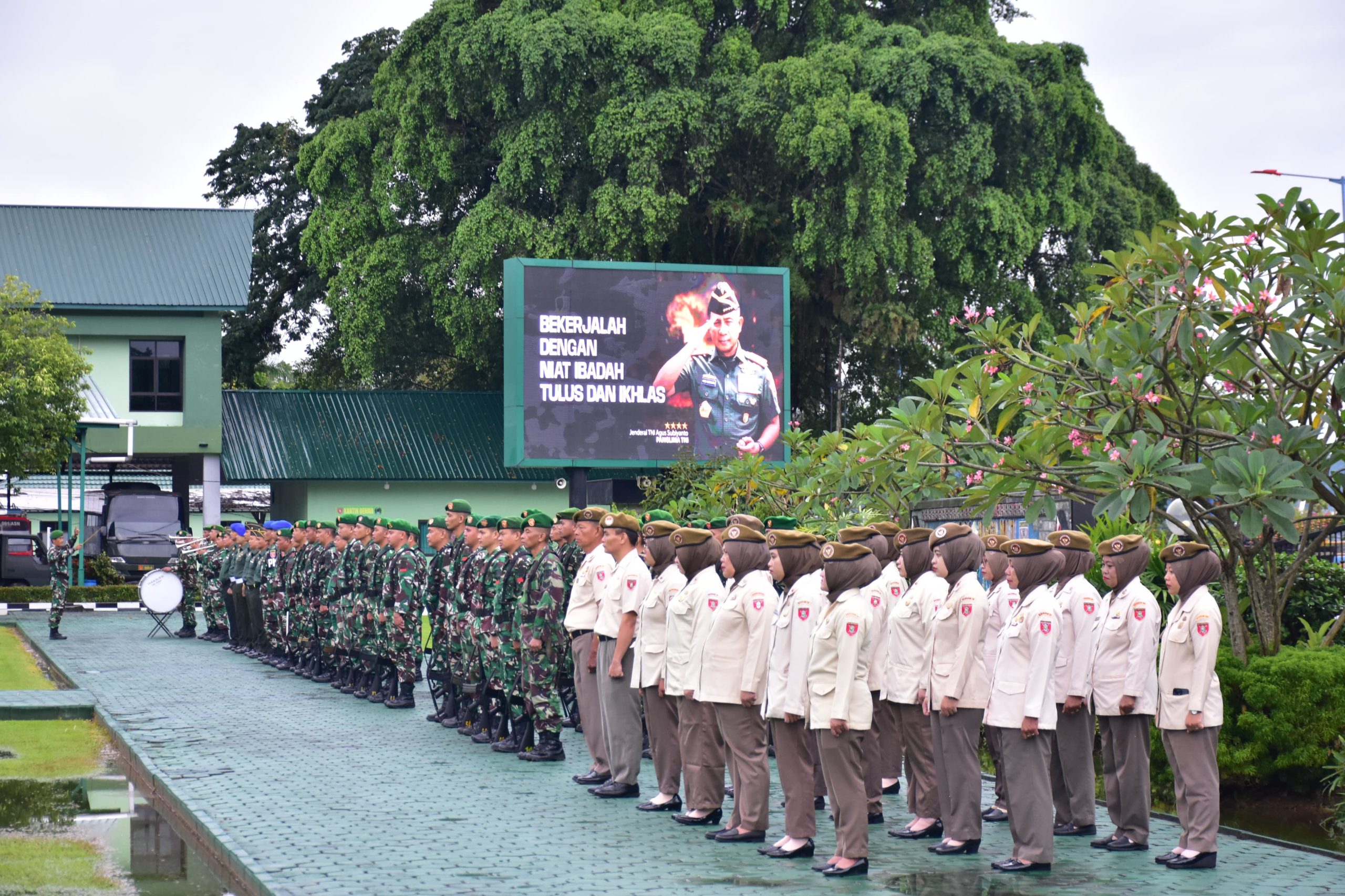 Danrem 091/ASN Brigjen TNI Anggara Sitompul, S.I.P., M.Si menyampaikan apresiasi kepada seluruh prajurit dan PNS atas dedikasi dan kinerja dalam mendukung pelaksanaan tugas pokok satuan.