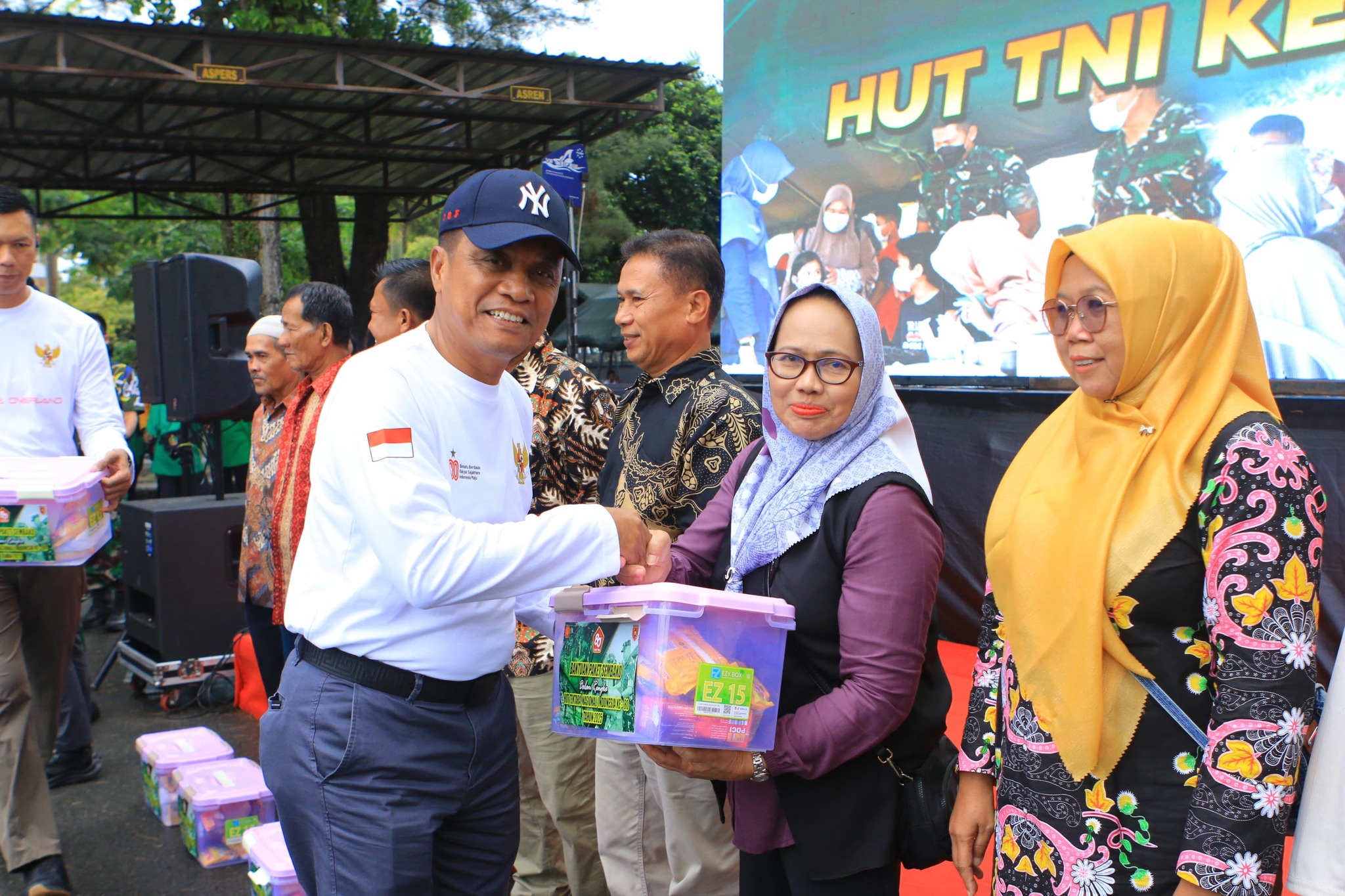 Rangkaian kegiatan diawali dengan penyerahan secara simbolis sebanyak 250 paket sembako kepada masyarakat Balikpapan, disusul dengan peninjauan pengobatan massal dan kegiatan donor darah di Aula Makodam VI/Mlw.