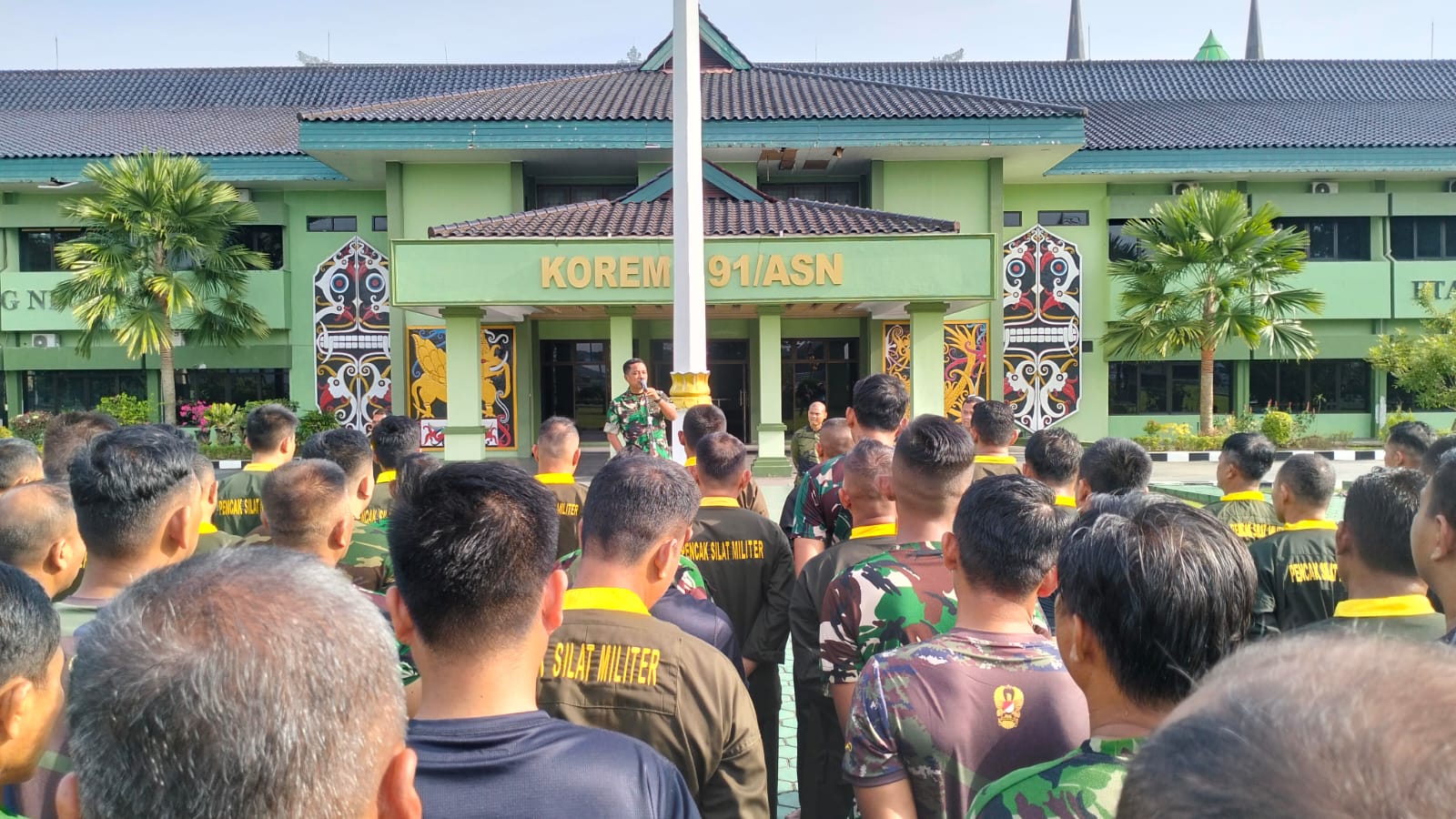 SAMARINDA – Danrem 091/Aji Surya Natakusuma (ASN) Brigjen TNI Anggara Sitompul, S.I.P., M.Si.,  meninjau langsung pelaksanaan latihan Pencak Silat Militer (PSM) yang digelar di Lapangan Makorem 091/ASN Jalan Gajah Mada No 11 Samarinda Kaltim, Jum’at (23/1/2026).
