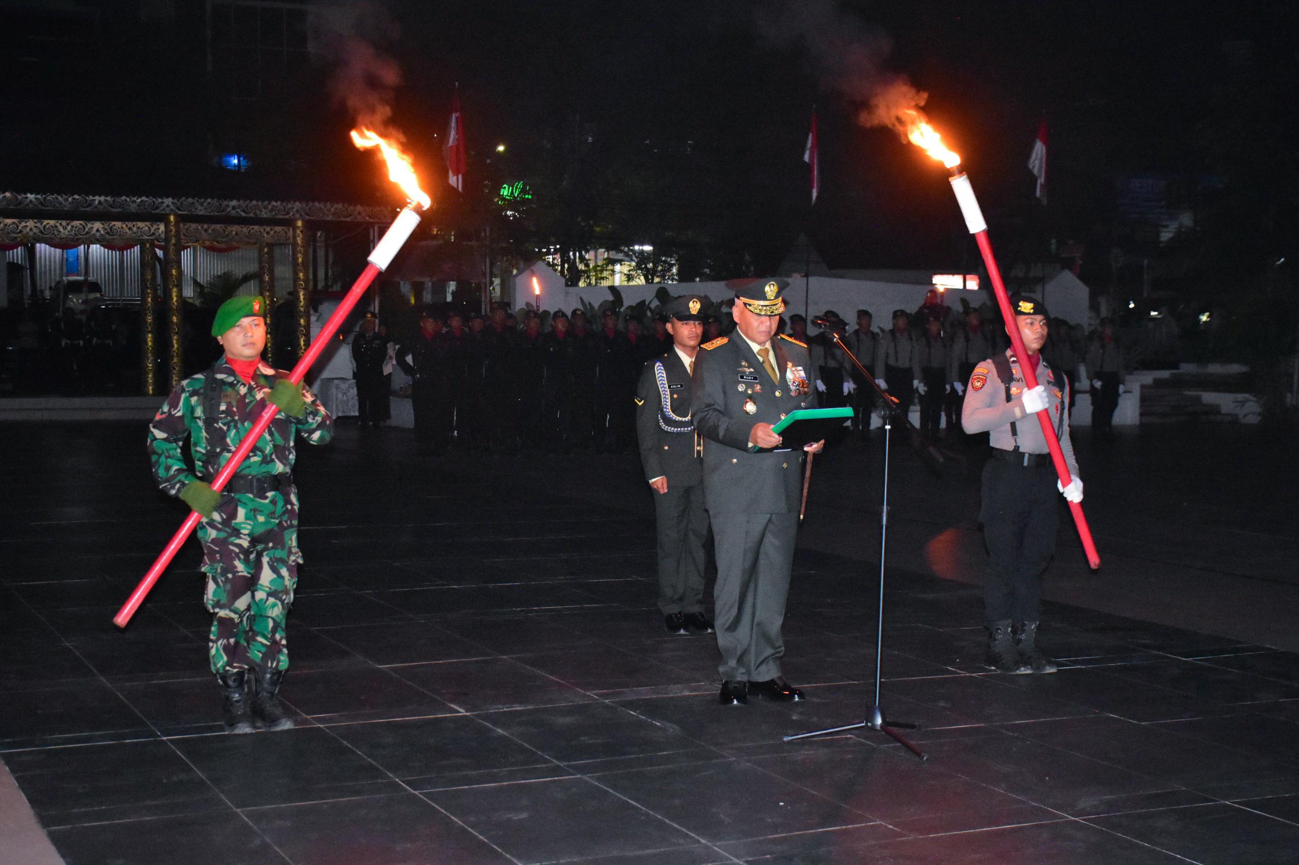 Bertindak sebagai Inspektur Upacara (Irup) Pangdam VI/Mlw, Mayjen TNI Rudy Rachmat Nugraha, S.I.P., M.Sc. kemudian Pangdam VI/Mlw membacakan ikrar “Kami yang hadir malam ini pukul 00.00 menyatakan penghormatan setinggi-tingginya atas keikhlasan dan kesucian pengorbanan kepada para pahlawan dalam pengabdian terhadap perjuangan demi kebahagian negara dan bangsa,” dan dilanjutkan mengheningkan cipta yang disertai dengan menyalaan obor sebagai alat penerang.