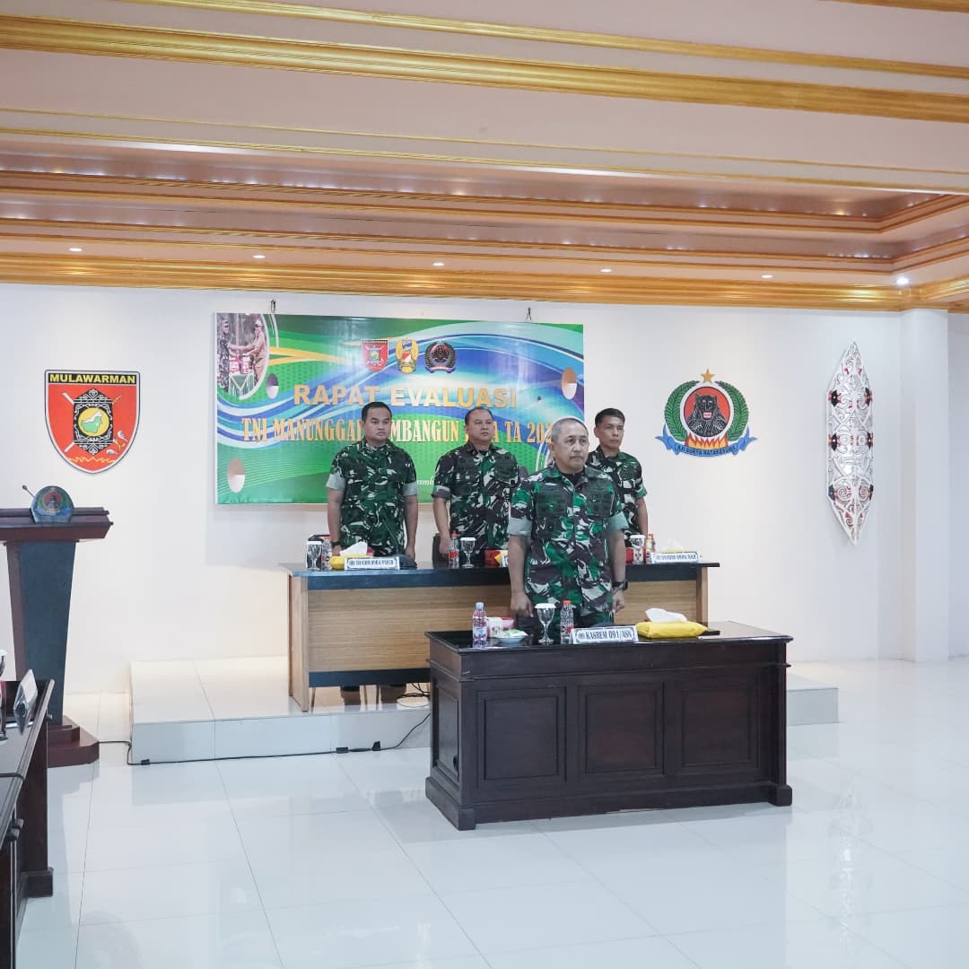 SAMARINDA – Kasrem 091/ASN, Kolonel Inf Priyanto Eko Widodo S.I.P didampingi Kasiter Kasrem 091/ASN, Kolonel Inf Ricardo Siregar, S.H., M.Tr., Dandim 0904/Paser Letkol Inf. Ary Susetyo, Dandim 0908/Btg Aryo Bagus Daryanto dan Dandim 0906/KKR diwakilkan Kapten Inf Ali Amad, Rapat Evaluasi TMMD TA. 2024 melalui Video Teleconferensi, bertempat di ruang Yudha Korem 091/ASN No. 11 Jl. Gajah Mada Kota Samarinda Kalimantan Timur.