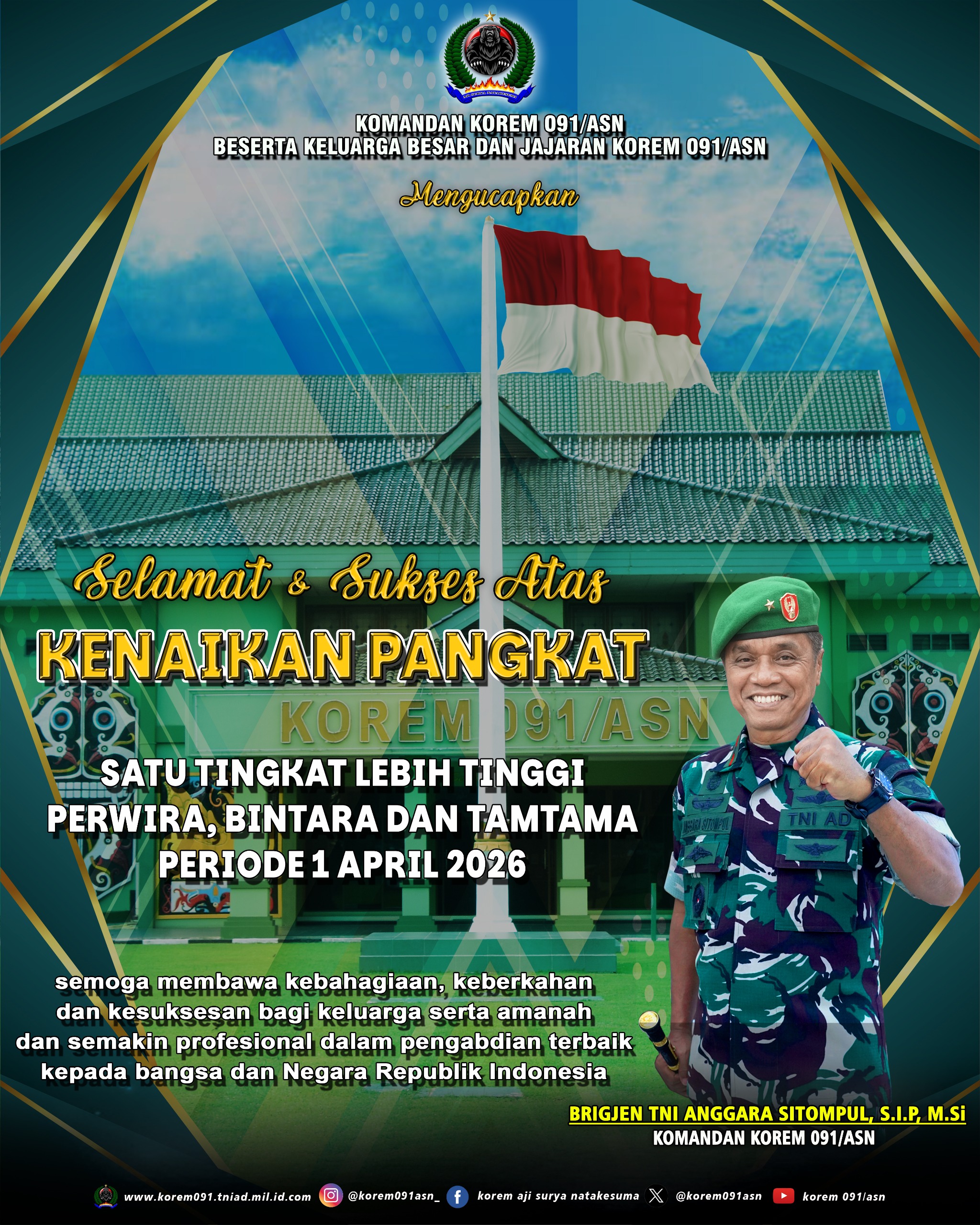 Selamat & Sukses Atas KENAIKAN PANGKAT Satu Tingkat Lebih Tinggi Perwira, Bintara dan Tamtama Periode 1 April 2026