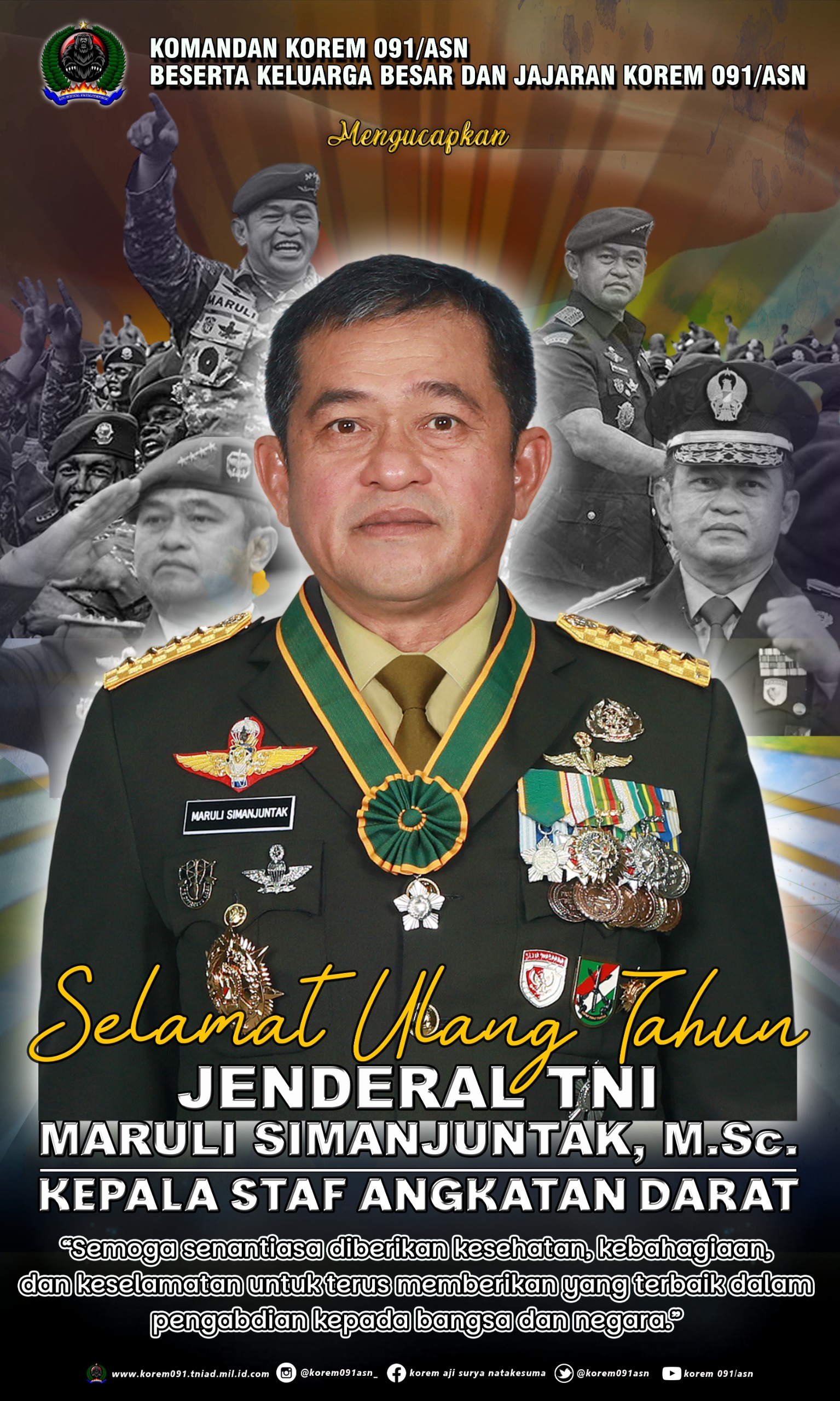 Komandan Korem 091/ASN dan Beserta Keluarga Besar Korem 091/ASN mengucapkan