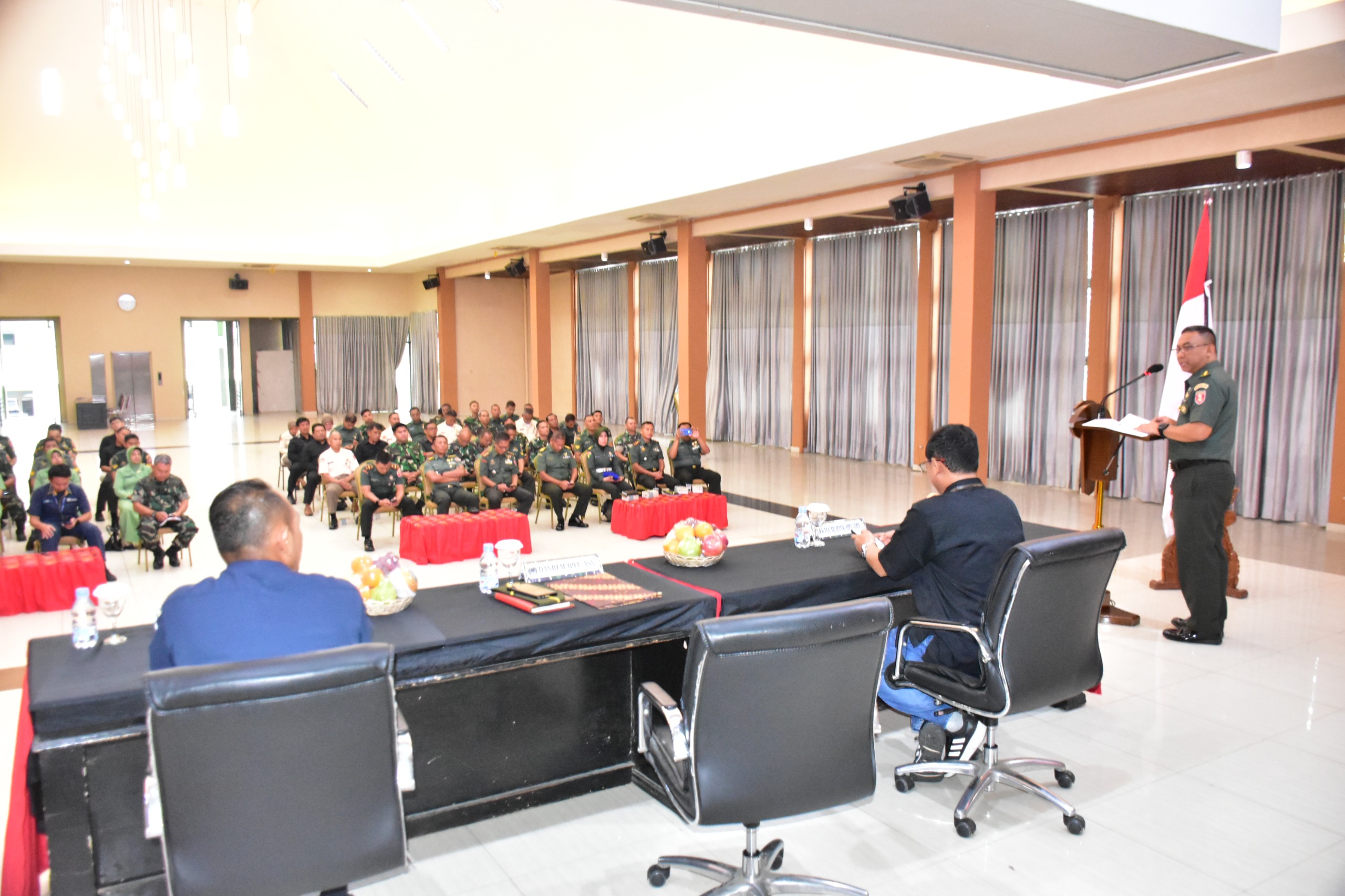Sambutan Danrem 091/ASN Brigjen TNI Anggara Sitompul, S.I.P., M.Si. di bacakan Kasi Log Kasrem 091/ASN mengatakan, Pada kesempatan ini selaku Komandan Korem 091/ASN saya mengucapkan terima kasih dan selamat datang kepada Kepala Kantor Cabang PT. ASABRI (Persero) Balikpapan beserta Tim Sosialisasi, yang bersedia untuk menyampaikan sosialisasi bagi prajurit dan PNS TNI yang nantinya akan memasuki masa pensiun dan berbagai program lainnya tentang hak-hak dan kewajiban peserta ASABRI kepada jajaran Korem 091/ASN. Semoga rangkaian kegiatan yang akan dilaksanakan ini dapat berjalan lancar sesuai dengan yang kita harapkan bersama.
