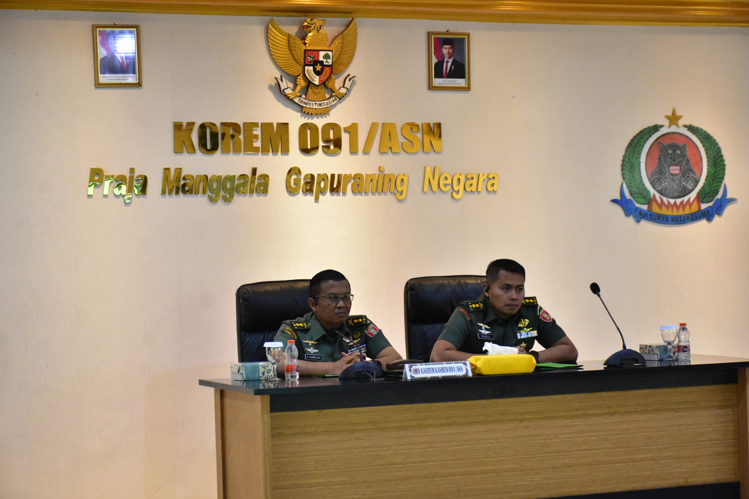 Penyampaian Kasiter Kasrem 091/ASN Letkol Inf Aat Supriyatna mengatakan, Lakukan kegiatan ini secara maksimal sesuai dengan kemampuan jangan sampai nanti pada saat kegiatan gagal tidak mencapai target yang di inginkan.