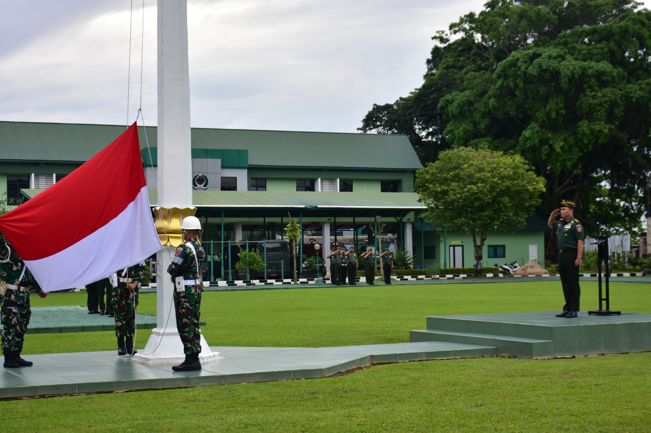 Upacara pengibaran bendera merah putih ini dihadiri oleh para Prajurit dan Pegawai Negeri Sipil Korem 091/ASN dengan penuh semangat. mereka berkumpul untuk menghormati bendera merah putih sejak Proklamasi Kemerdekaan serta menyanyikan lagu kebangsaan Indonesia Raya.