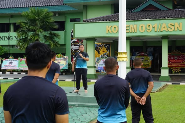 Kegiatan ini dilaksanakan pada Jum’at pagi (14/11/2025) di Lapangan Korem 091/ASN setelah apel gabungan yang diikuti oleh seluruh personel Makorem dan Balak Aju KOREM 091/ASN.