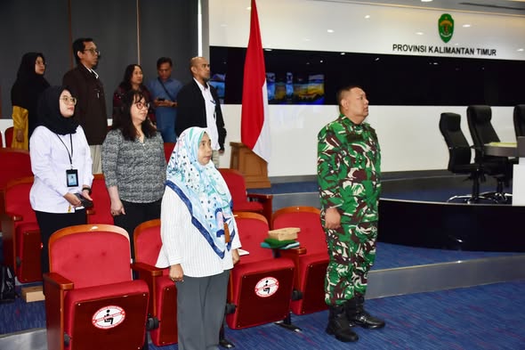 SAMARINDA – Danrem 091/ASN Brigjen TNI Anggara Sitompul, S.I.P., M.Si diwakili Kasiren Korem 091/ASN Letkol Inf Tony Setyo Widodo mengikuti Rapat Koordinasi (Rakor) Perkembangan Situasi Terkini secara daring di Ruang Heart of Borneo, Kantor Gubernur Kalimantan Timur, Selasa, 2 September 2025.