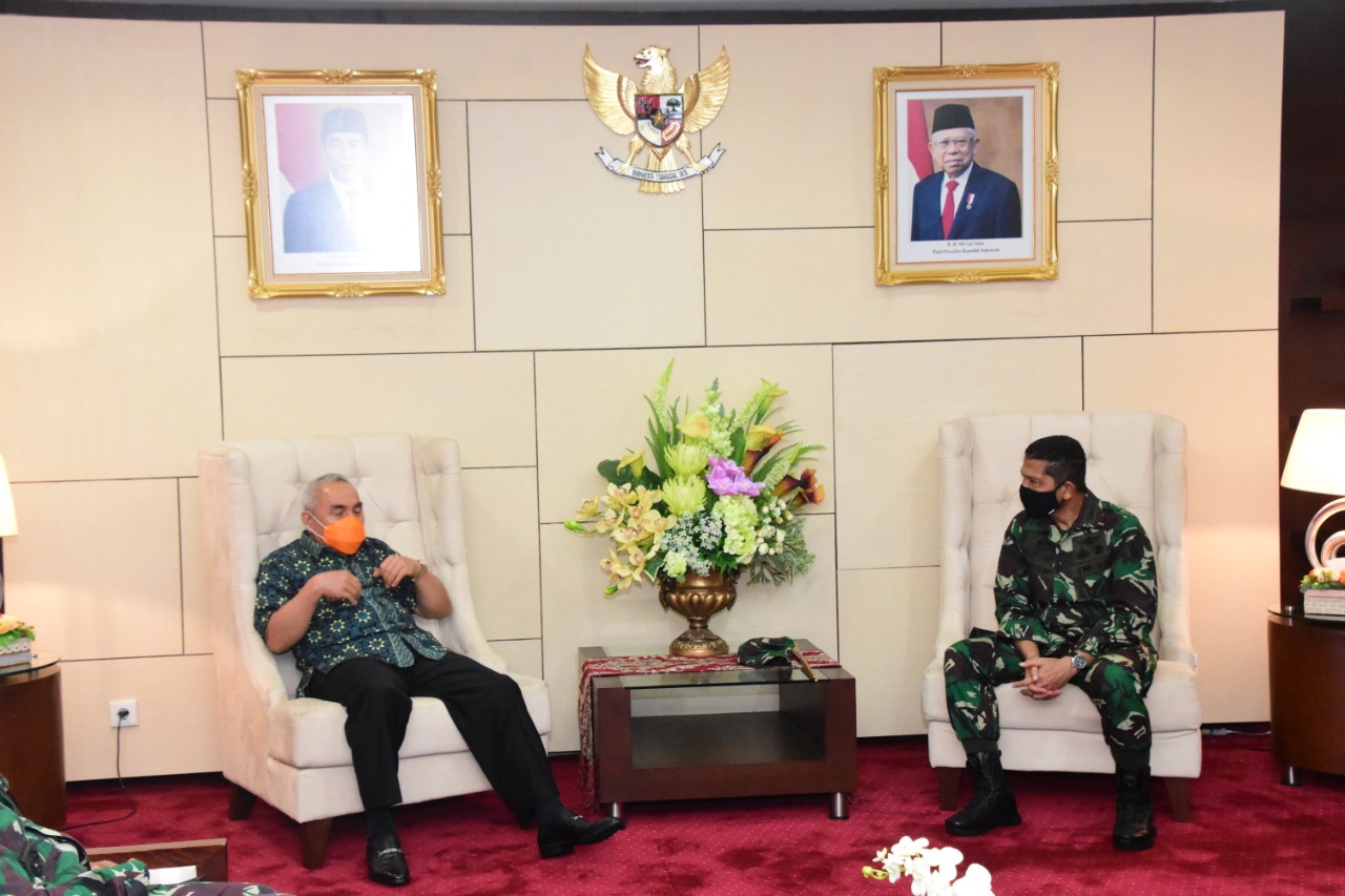 Dalam silaturahmi dengan Gubernur Kaltim, Danrem 091/ASN Kolonel Inf Cahyo Suryo Putro didampingi Kasrem Kolonel Inf Ruslan Effendi, Kasintel Kolonel Inf Priyanto Eko dan Kasiter Kolonel Arh MJ Malik.