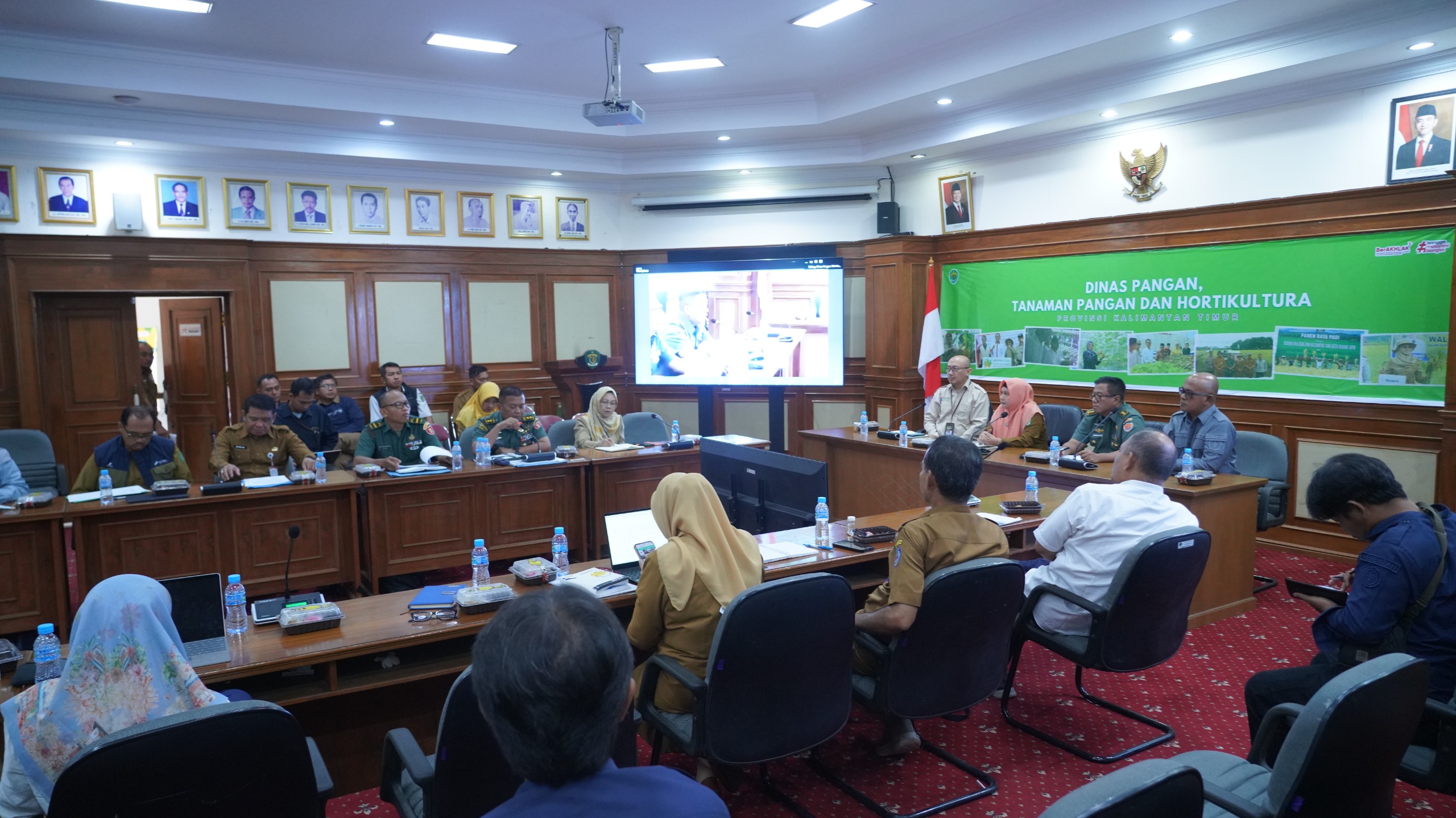 Kasiter Kasrem 091/ASN Letkol Inf Aat Supriyatna hadiri Rakor serta Vicon Pengawalan Kegiatan Optimasi Lahan Konstruksi, Brigade Pangan, LTT Reguler dan Padi Gogo Prov. Kaltim, bertempat di Ruang rapat Dinas Pangan, Tanaman Pangan dan Hortikultura Prov. Kaltim, Jalan Basuki Rahmat No.6, Pelabuhan, Samarinda Kota. Selasa (29/7/2005).