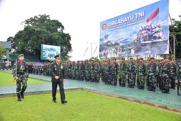 SAMARINDA – Kasrem 091/Asn, Kol Kav Rahyanto Edy Yunianto S.A.P.., bertindak sebagai Inspektur Upacara (Irup), memimpin upacara peringatan HUT ke-80 Tentara Nasional Indonesia, bertempat di lapangan Makorem 091/Asn, Jln. Gajah Mada, Kelurahan Bugis, Kecamatan Samarinda Kota, kota Samarinda, Provinsi Kaltim, Minggu (5/10/2025).